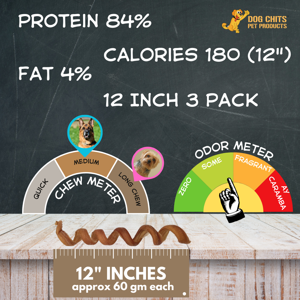 Curly Bully Sticks, 12 Inch, 3 Pack